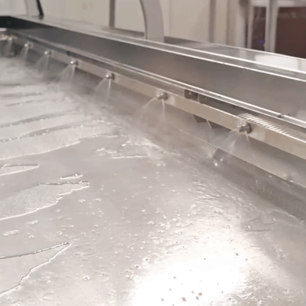 Esta tecnología, desarrollada por nuestro equipo de ingeniería, se integra en vitrinas refrigeradas destinadas a la exposición de productos frescos sin envasar, como carne o pescado, garantizando una limpieza automática, eficiente y segura.