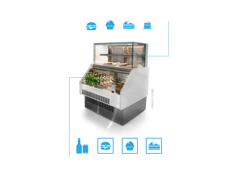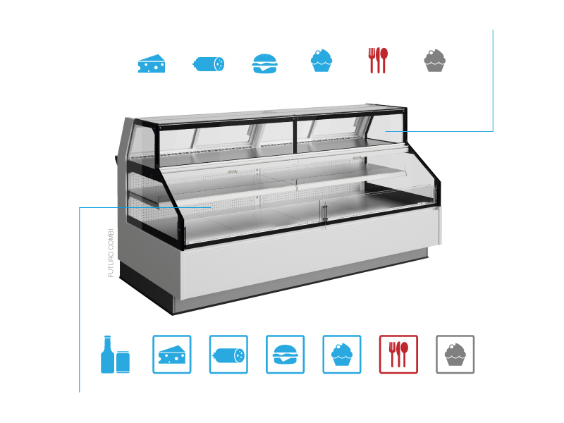COMBI displays are available in the FRESCO and FUTURO range in fully chilled models (both compartments) and a heated model in the FUTURO range.