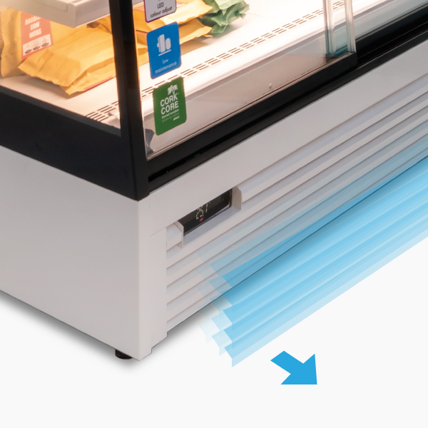 L'innovant système de chauffage ventilé permet de réaliser jusqu'à 34 % d'économies d'énergie par rapport aux modèles traditionnels et garantit une température uniforme dans toute la vitrine.